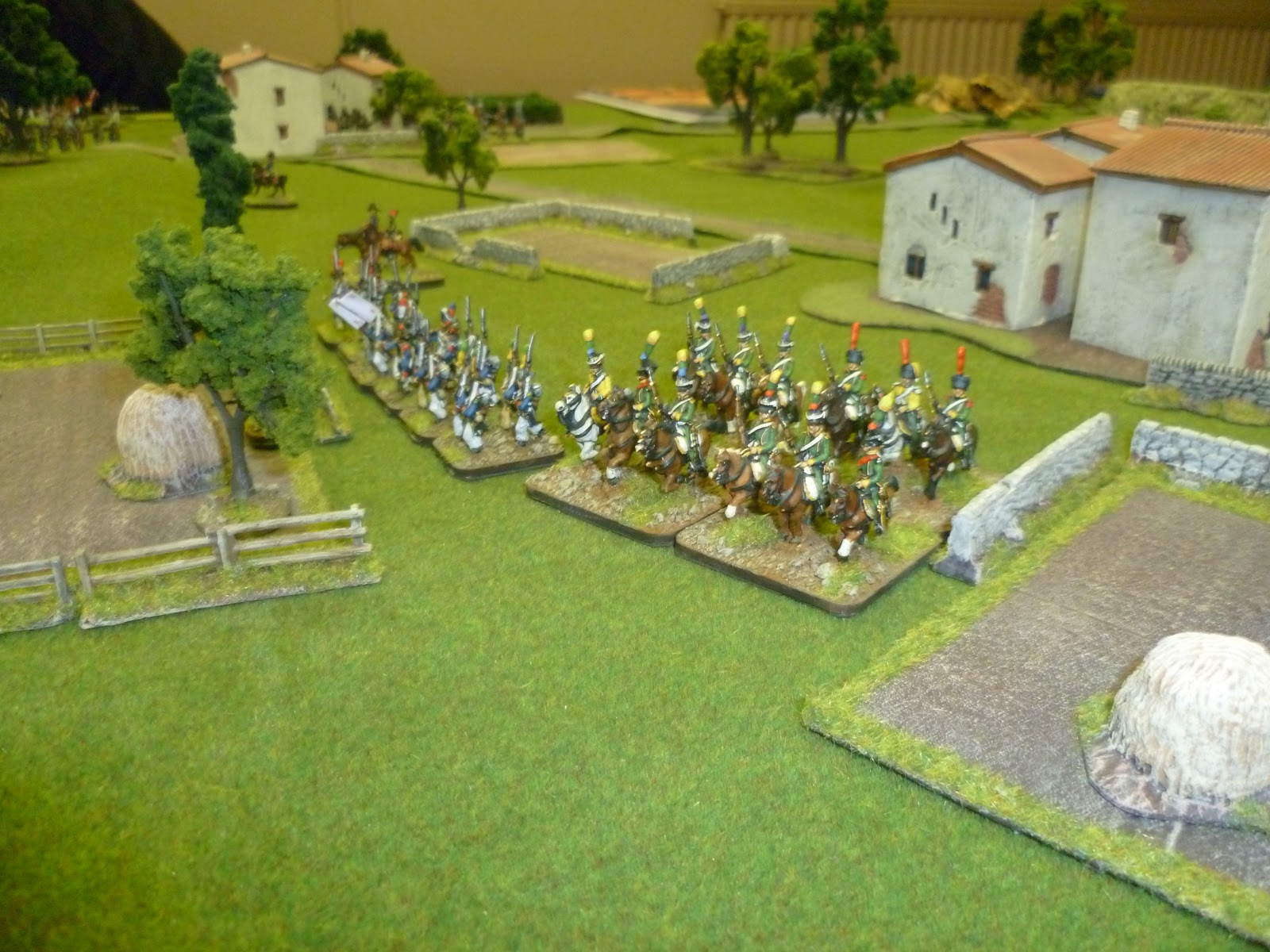 With his centre hotly engaged and his right flank wide open the only reserve left to hold up Hill's brigade were the 200 plus men of the 26th Chasseur a Cheval who gamely trotted forward to meet the redcoats drawing their sabres as they approached. As if in instant salute to this bold advance by such a small cavalry contingent the 1/5th and 1/9th formed line, dressed their ranks and presented arms.