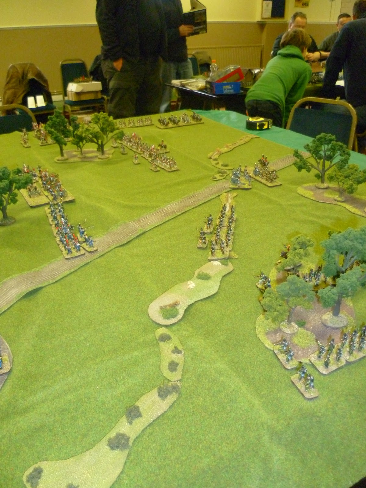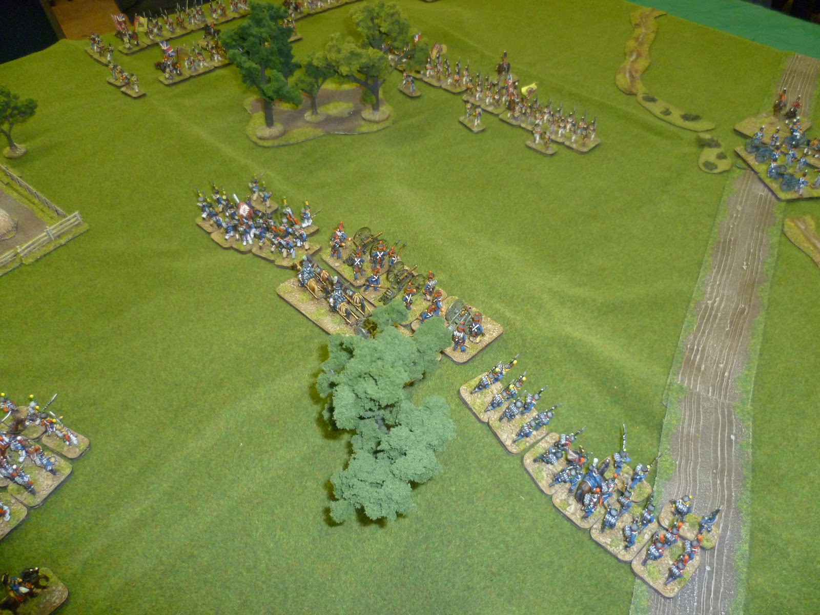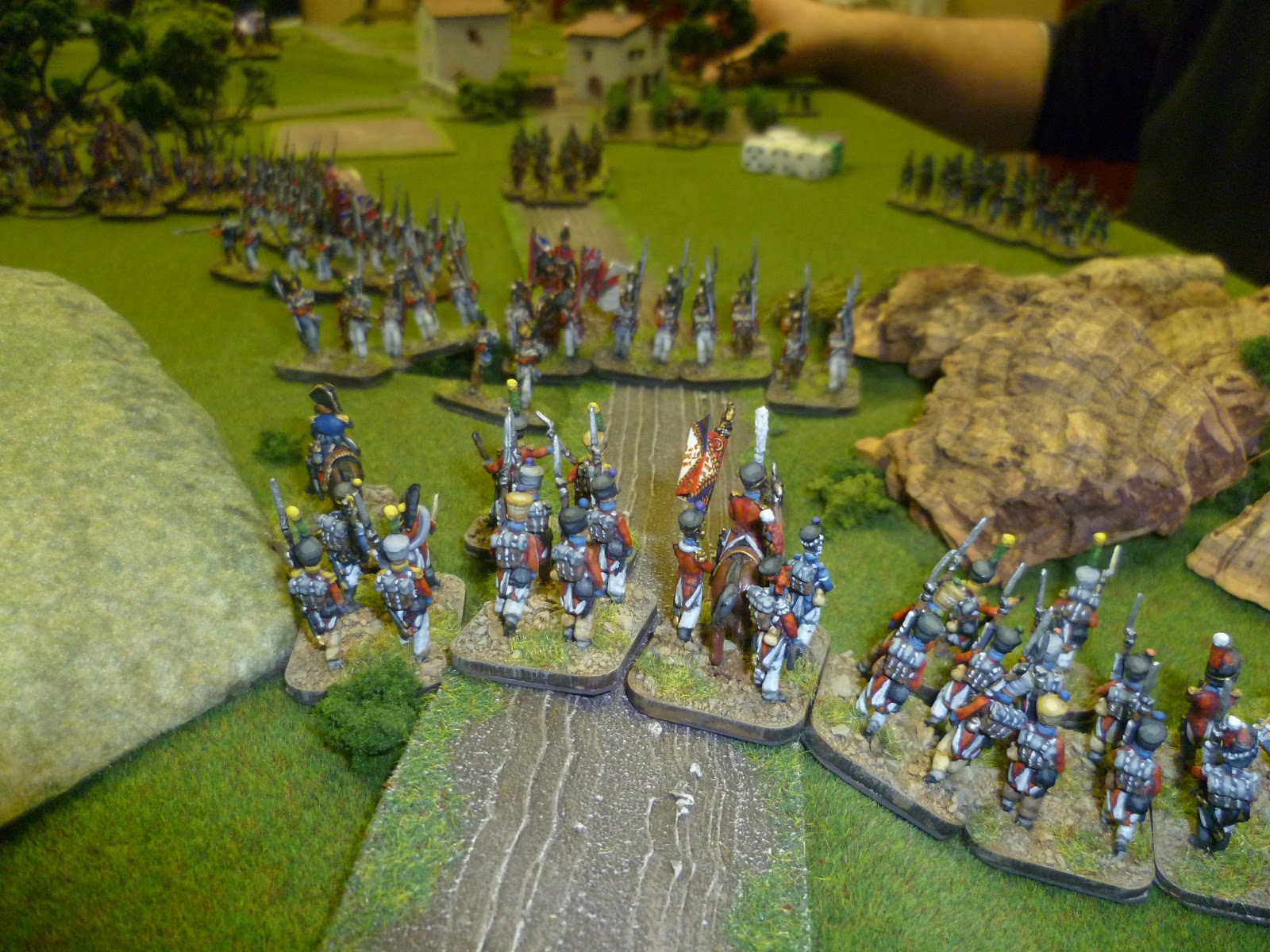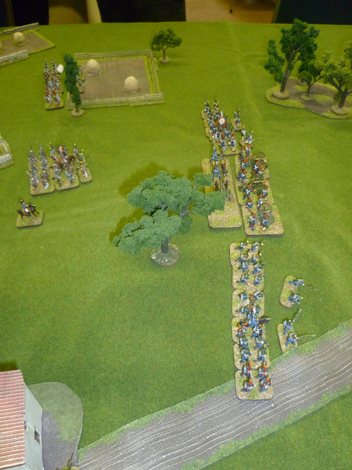 With an overwhelming force in front and around both flanks DeLaborde could only hope to delay his adversary and try to inflict occasional checks on the allied advance. Timing the precise time to disengage would be critical. The scenario aimed to capture this dilemma by requiring the French to stay and deny the Allies access to the ridge line at the top of the table for twelve moves, approximately three hours. However if they delayed too long they risked becoming embroiled in a combat that would destroy their force before they could withdraw.