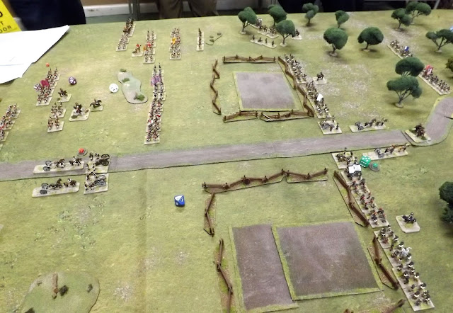 The militia lacking bayonets were beaten soundly on the second round of combat and their casualty count took their brigade over the FS total causing all their remaining units to be removed from the table.