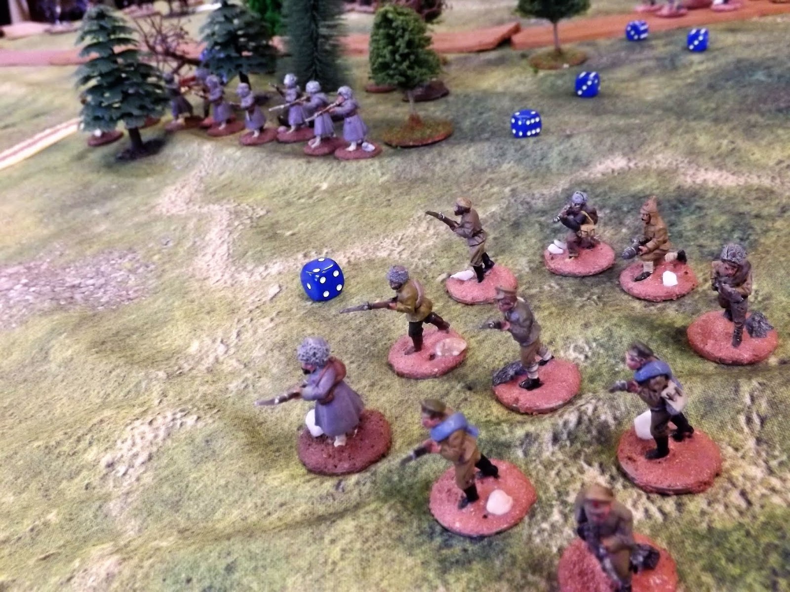 The Bolshevik bridge defenders soon realise that today will not be just another quite one and start to consider their options. The scenario requires the two Bolsheviks infantry units to roll a D6 each turn, to determine what they might do; go on strike, defend the bridge valiantly or remember there is political rally to attend back in Yeldakh?